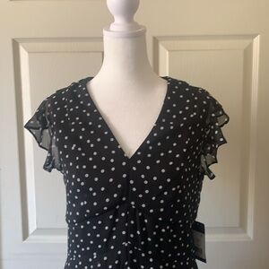 TOMMY HILFIGER Elegant Women White and Black Chiffon Polka Dot Dress, Size 4