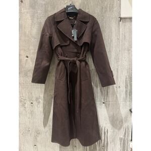 In Rich Dark Chocolate US Womens Wool trench coat Size M. Featuring buttons on front and waist tie. Comes with extra button