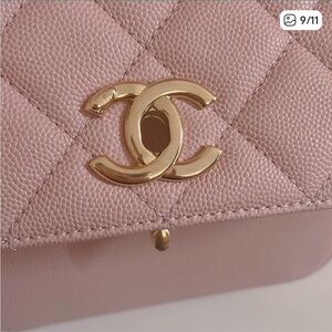 Chanel business affinity shoulder bag in blush pink. Quilted texture with gold-tone chain and logo. Sophisticated and chic. -New with tag.