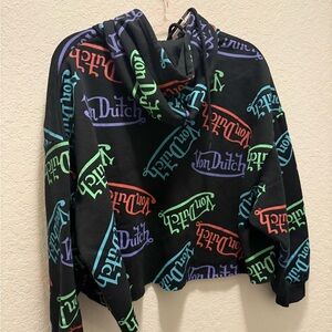 Von Dutch Women's Black Crop Hoodie with Colorful Logo Pattern * hoodie only