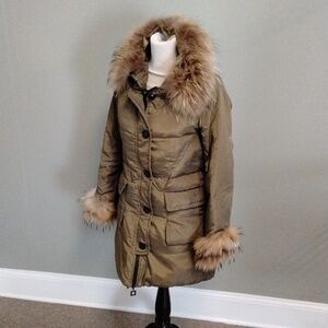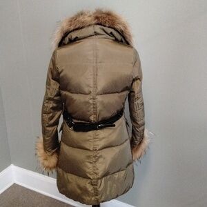 Women's Fox Fur-Trimmed Puffer Coat - Olive