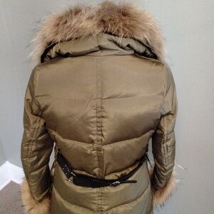 Stay warm and stylish with this olive puffer coat featuring luxurious fur trim. Perfect for chilly days.
