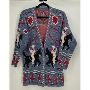 Vintage 90s Delia McKain Western Cowboy Roping Cardigan Sweater Size Lg Blue