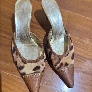 Size 7.5 (38.5) Elegant leopard print heels with studded accents. Perfect for a bold look. Purchased at Neiman Marcus. No damage or wear on the top of the shoe, they are still in great condition.