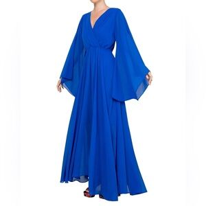 NWT Meghan LA Women’s Royal Blue 70’s Boho Sunset Maxi Dress Size Small