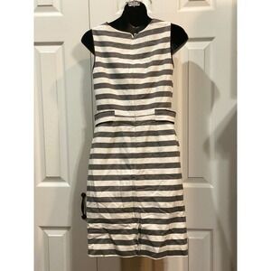 Keywords: Banana Republic dress, striped dress, sleeveless dress, gray dress, white dress, size 0 dress, career dress, party dress, casual dress, women's fashion, classic dress, summer dress, striped sheath dress