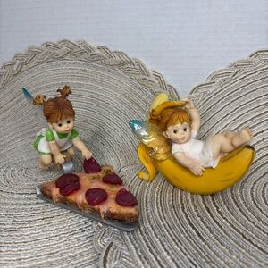 Enesco Group with “My Little Kitchen Fairies”. First one is the pepperoni snitch fairie from 2006. And the other figurine is called “Banana Fairie” from 2001. Both are in good condition with no flaws noted.