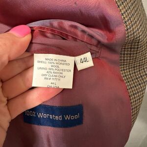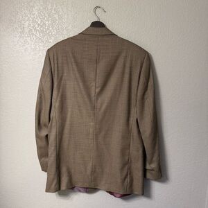 T. Harris London Tan Brown Houndstooth 100% Wool Blazer 44L