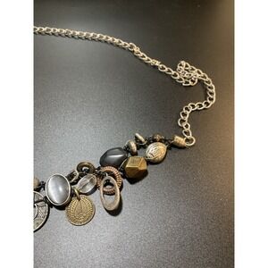 This NWT Chico's Chunky Mixed Metal Chain Belt is a stylish accessory for women in size L. The geometric pattern and adjustable feature make it versatile for various outfits and occasions. The silver and gold colors add a touch of bohemian flair to any ensemble, while the medallion accents provide a trendy detail. The belt is designed to accommodate waist sizes more than 39 inches, making it a comfortable and fashionable choice for a festival or boho-inspired look.