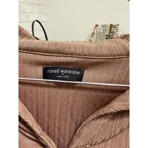 Naked Wardrobe Mocha Button Up Crop Top Ribbed Stretch Long Sleeve Womens Medium