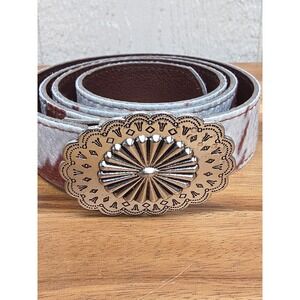 Womens Western Cowhide Brown & White Belt Push Close 42" Cowgirl Rodeo