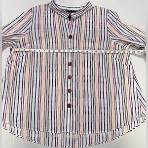 Ali Miles 1X Cotton Textured Rainbow Stripes Button Down Tunic Roll Tab Sleeve