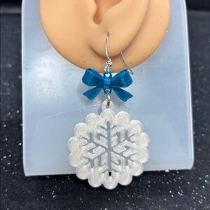 These elegant snowflake earrings feature a charming blue bow, perfect for adding a touch of winter wonder to any outfit. The silver snowflake design is both stylish and versatile.