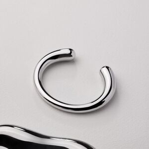 Elegant silver open cuff bracelet. Sleek and modern design.