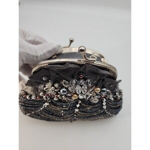 Vintage grey silver Mary Frances rhinestone beaded evening purse