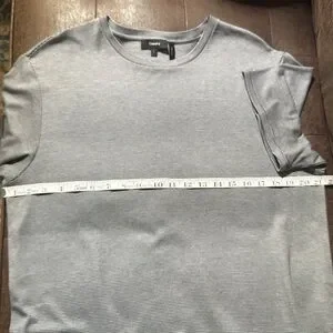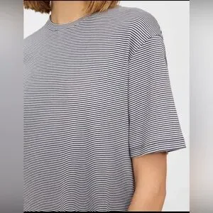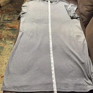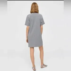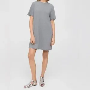 Casual striped gray t-shirt. Perfect for everyday wear. The Theory T-Shirt Dress is a lightweight wardrobe staple that layers comfortably under sweaters and jackets alike. Crafted from American Supima® cotton knit in Peru, the dress is finished with a subtle stripe and is machine washable for easy care.