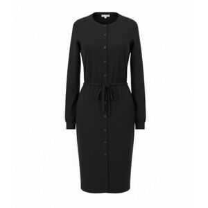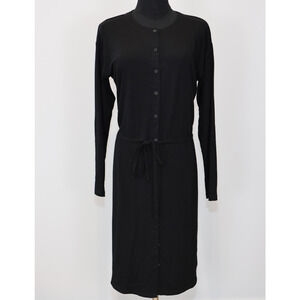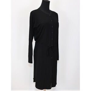 AUTHENTIC EILEEN FISHER Black Viscose Jersey Drawstring Waist Button Dress Retail: $208