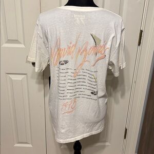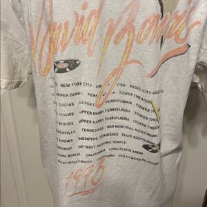 NWT Vintage inspired David Bowie crewneck tee. Soft cotton with relaxed fit. Bowie with saxophone graphic on front. 1973 tour dates on back. Size L Color Off White 21” PTP & 26” L Cotton