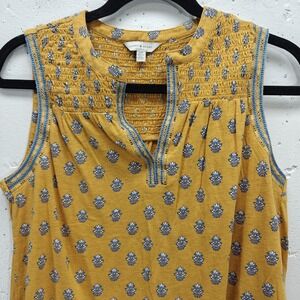 Lucky Brand Womens Top Small Yellow V-Neck Sleeveless Blouse Cottagecore Boho