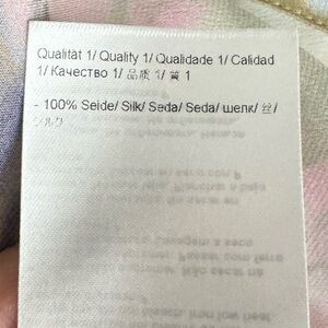 Style Encore Keywords: designer silk blouse, luxury silk top, abstract floral print, cowl neck silk blouse, Escada elegant top, European designer top, evening blouse, cocktail wear blouse