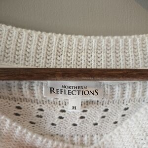 Northern Reflections White Sweater with Blue and Yellow Stripes