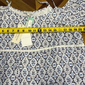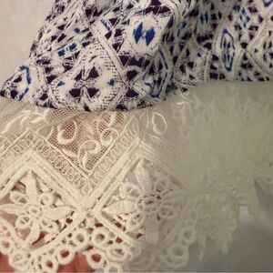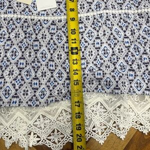 Skies Are Blue Stitch Fix Geometric Print Blouse with Lace Hem new with tags