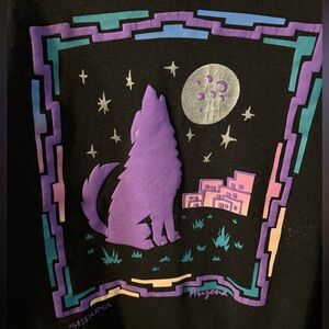 Vintage 90’s Sedona Arizona Southwestern Tourist Sweatshirt Wolf Moon Desert Native American design. Colorful top with a fun split button neck. No tags - see pics. Best for medium - large.