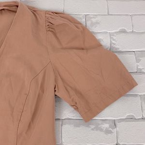 💰Bundle 3/$30 Zara Woman Button up puff shirt sleeve top blouse M pink salmon