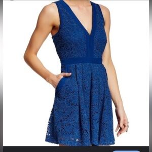 FREE PEOPLE Lovely In Lace Black Mini Dress Blue Pockets Zip Size Small Petite