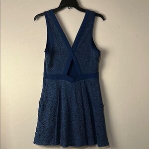 The Free People Lovely In Lace Blue Mini Dress is a stylish and versatile piece perfect for a variety of occasions. This sleeveless dress features a V-neckline and a flattering zip closure, with intricate lace fabric that adds a touch of bohemian flair. The black color and solid pattern make it easy to dress up or down, while the back pockets add a playful detail to the overall design. Ideal for weddings, parties, or casual outings, this dress is a must-have for any fashion-forward woman looking to make a statement with her outfit.