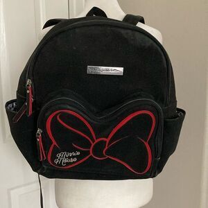 Minnie Mouse diaper back pack, multiple side pockets, large interior pockets with multiple storage pockets. 16 in across, 16 in height, in good condition
