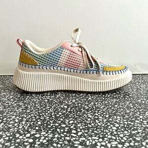 Nicole Miller Multicolor Woven Lace-Up Sneakers Sz 9
