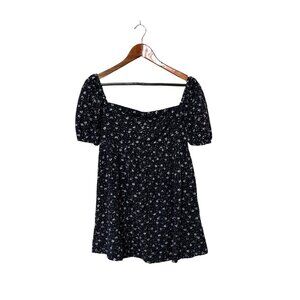 A lightweight black floral midi skirt with soft pleats and an elastic waistband. Perfectly suited for casual outings or relaxed occasions.