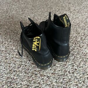 Dr. Martens Black Leather Boots with Yellow Stitching