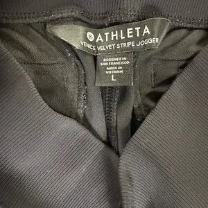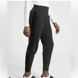 Athleta women’s large Black Velvet Stripe Joggers