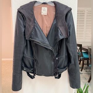 Free People Cleo Hooded Vegan Suede Moto Jacket S