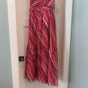 Tuckernuck Vibrant Pink sunset stripe Cadiz One-Shoulder Dress medium NWT