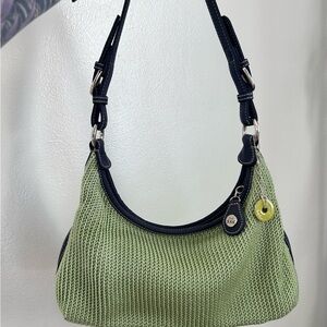 The Sak Lime Green & Navy Woven Crochet Spring Shoulder Hobo Bag Zip Closure