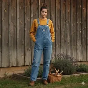 Keywords: denim overalls, bib overalls, workwear, utility, carhartt overalls, medium wash, womens overalls, casual wear, dungarees, classic fit, durable, streetwear