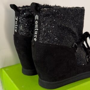 These are the Juicy Couture Mareen Black Lace-Up Wedge Sport Ankle Boots.