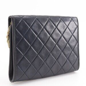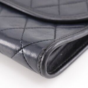 CHANEL Black Lambskin Leather Pochette Shoulder Bag