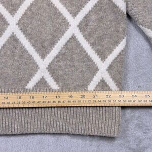 Abercrombie & Fitch Argyle V Neck Sweater Taupe White Women's XL Preppy Cozy