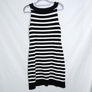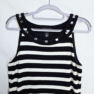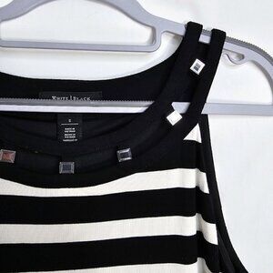 WHITE HOUSE BLACK MARKET Dress BLACK WHITE STRIPE Silver Gems size S 4-6 Summer