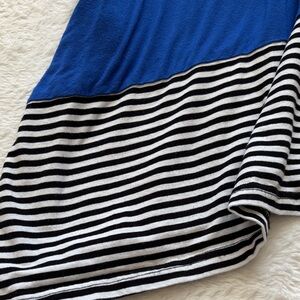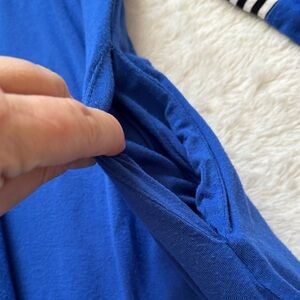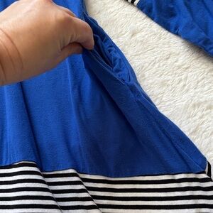 Stylish blue top with chic black and white stripes. Perfect for casual outings. Has pockets. Size 2XL. Super soft and comfy. Great condition and smoke free home