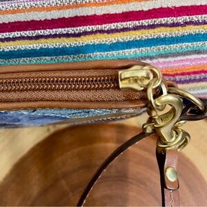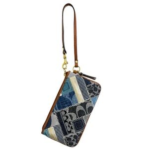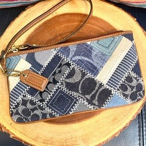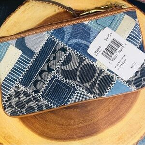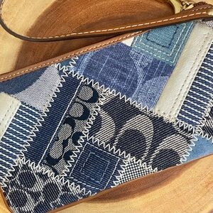 Vintage Coach Signature Y2K Denim Patchwork and Brown Leather Wristlet NWOT
