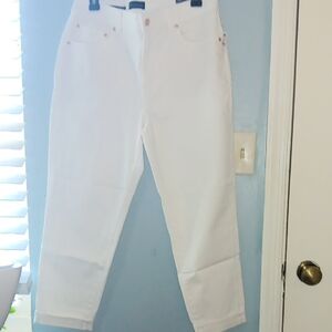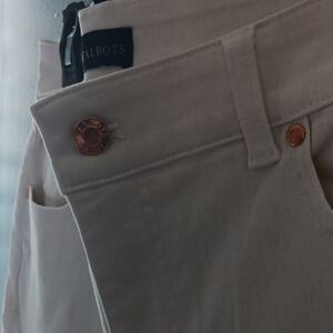 Elegant cream jeans featuring copper button details. Ideal for casual wear.