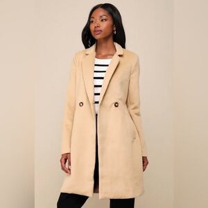 Lulus Harriet Long Double-Breasted Tan Coat
