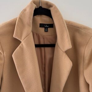 Take cover from the city winds while still looking top notch in the Lulus Harriet Long Double-Breasted Tan Coat! Thick, woven felt forms this chic, structured coat with a collared neckline, wide lapels, long sleeves, and long, two button bodice with diagonal welt pockets.