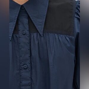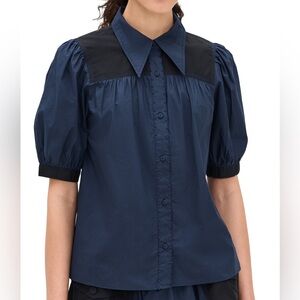 ULLA JOHNSON Freja Short Sleeve Button Down Top with Peter Pan Collar 2 Small
