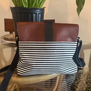 Fossil Tan and Black Striped Messenger Bag